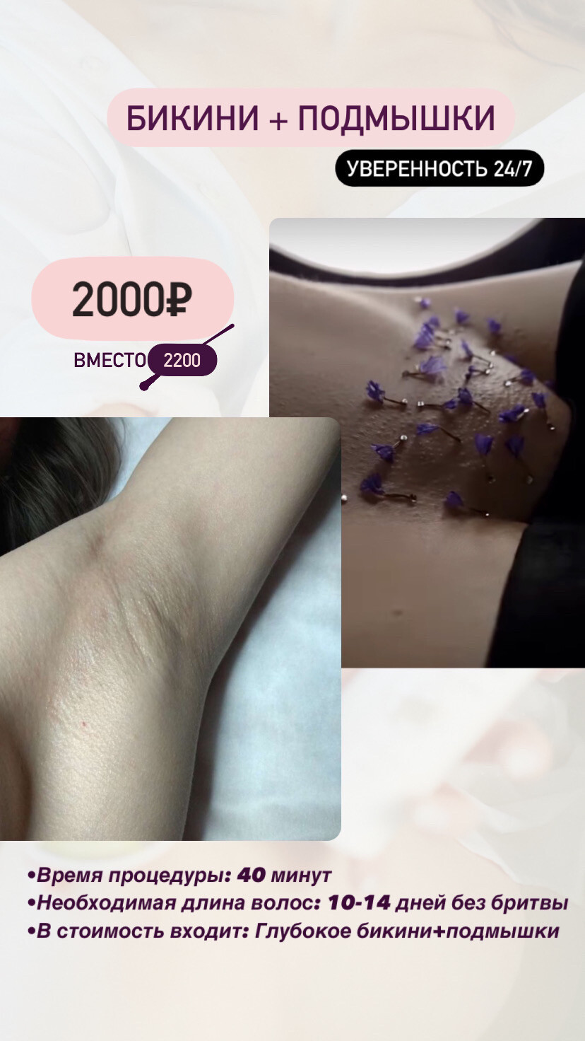 - Комплекс 1 Депиляция Глубокое бикини + Подмышечные впадины i