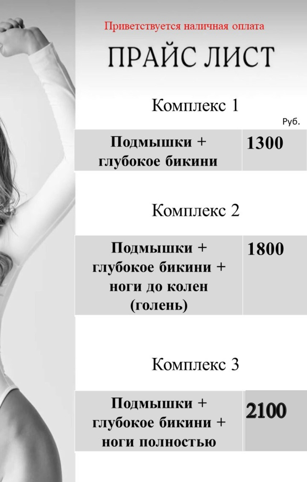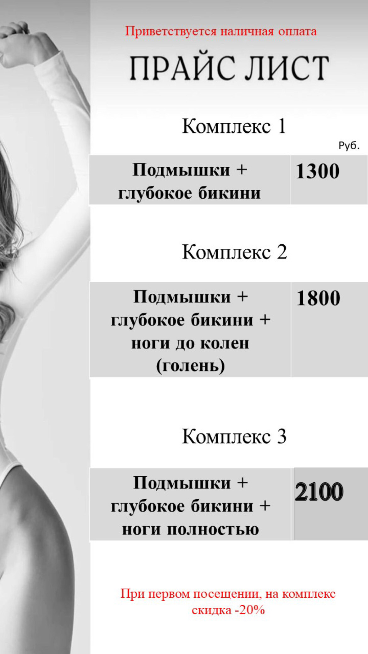 - Комплекс #3 : глубокое бикини + подмышки + ноги полностью i